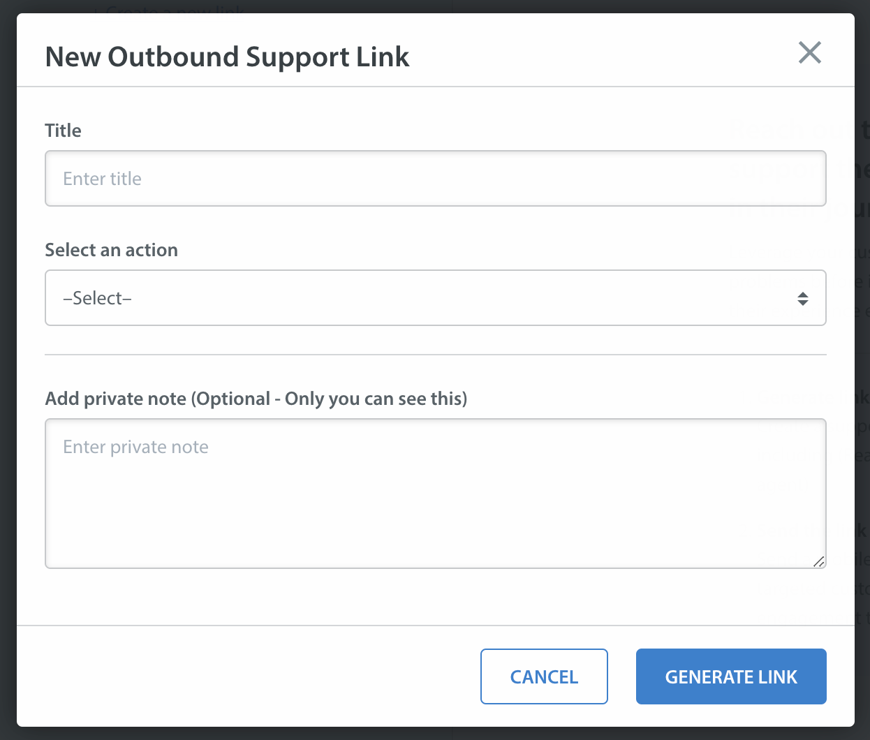 To generate the link for outbound support, on your Helpshift dashboard, go to Settings > Workflows > Outbound Support.